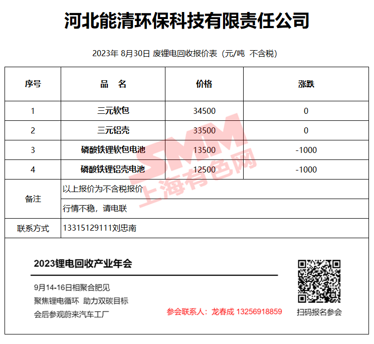 今日河北能清,废锂电回收报价已更新,有货的朋友欢迎联系我们!