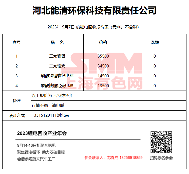 9月7日河北能清 废锂电回收报价