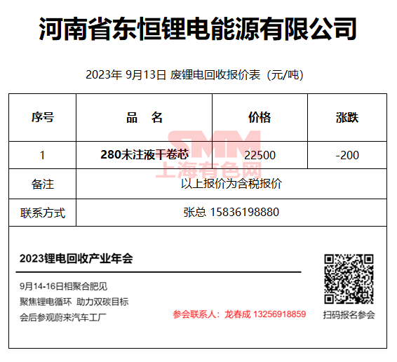 今日河南东恒,废锂电回收报价已更新,有货的朋友欢迎联系我们!