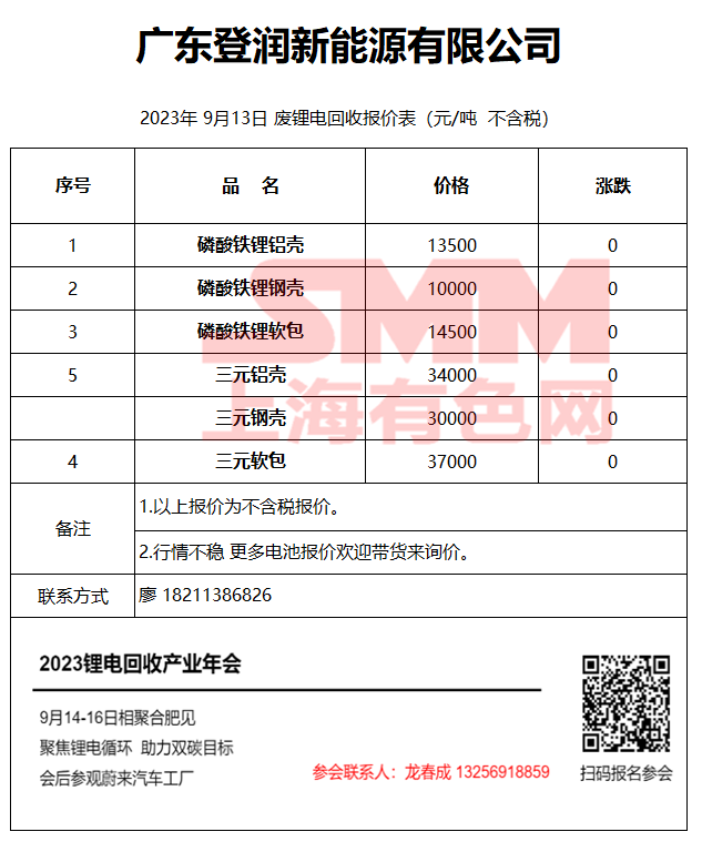 今日广东登润,废锂电回收报价已更新,有货的朋友欢迎联系我们!