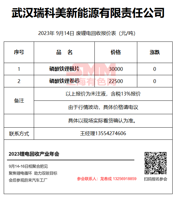 今日武汉瑞科美,废锂电回收报价已更新,有货的朋友欢迎联系我们!