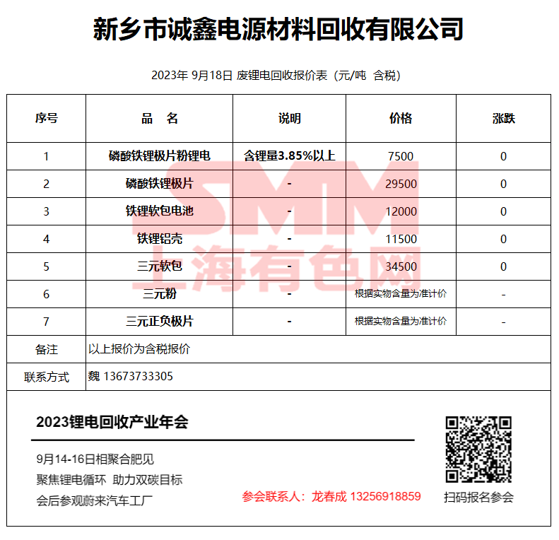 今日新乡诚鑫,废锂电回收报价已更新,有货的朋友欢迎联系我们!