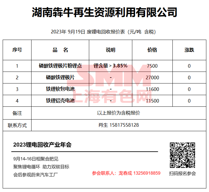 9月19日湖南犇牛 废锂电回收报价