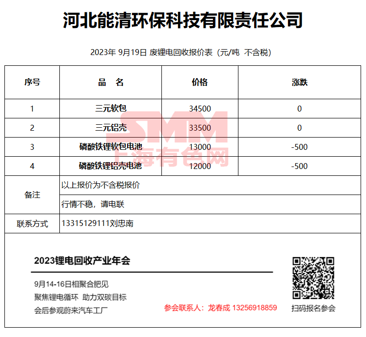 今日河北能清,废锂电回收报价已更新,有货的朋友欢迎联系我们!