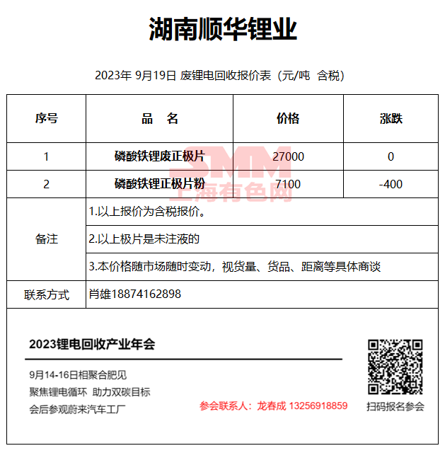 今日湖南顺华,废锂电回收报价已更新,有货的朋友欢迎联系我们!