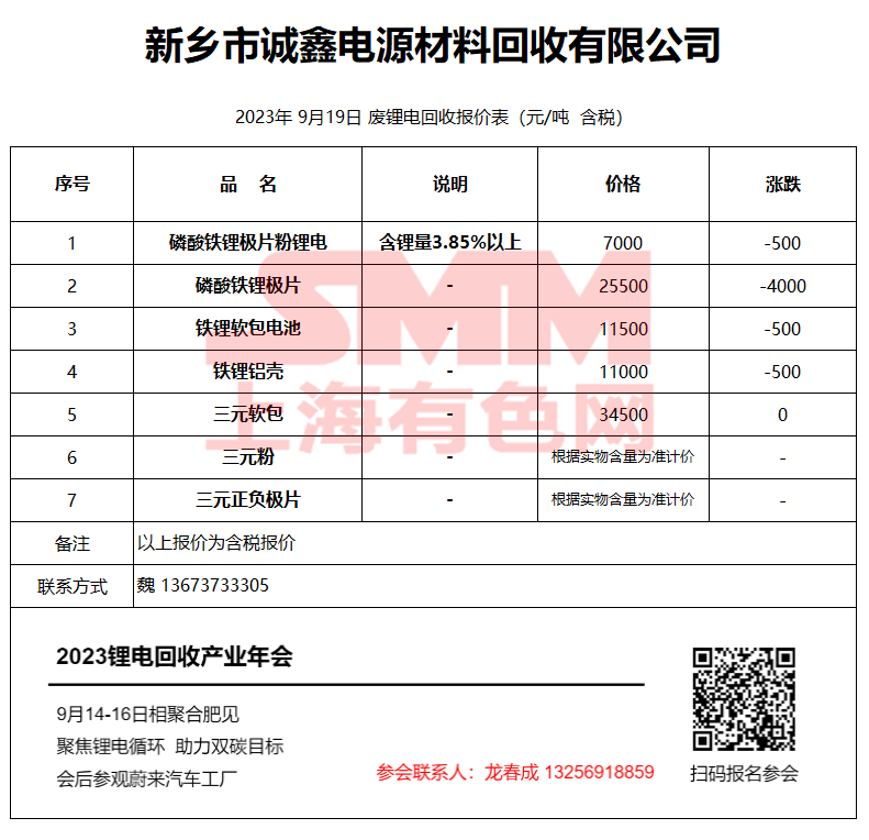 今日新乡诚鑫,废锂电回收报价已更新,有货的朋友欢迎联系我们!