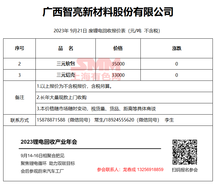 今日广西智亮,废锂电回收报价已更新,有货的朋友欢迎联系我们!