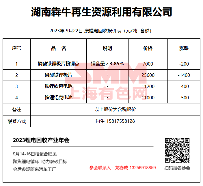 9月22日湖南犇牛 废锂电回收报价