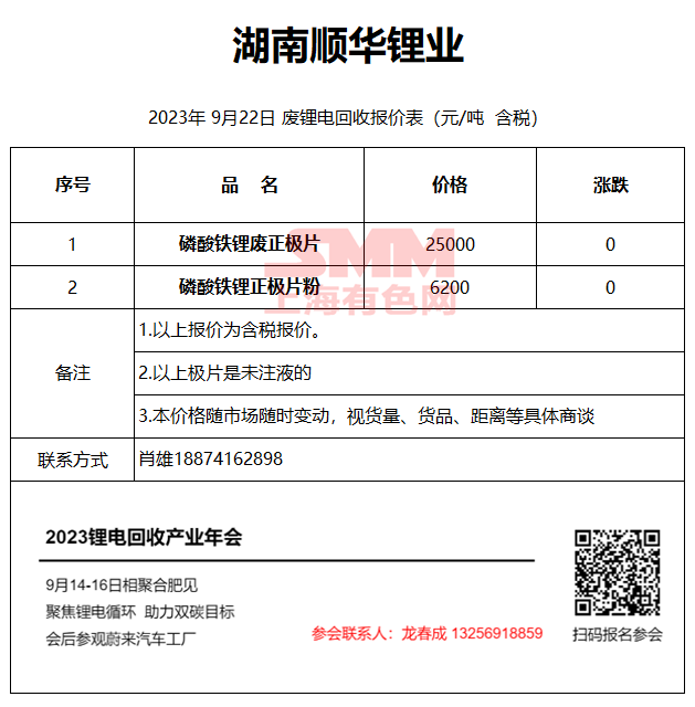 9月22日湖南顺华 废锂电回收报价
