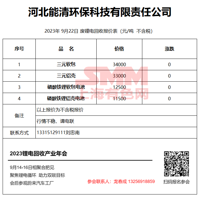 今日河北能清,废锂电回收报价已更新,有货的朋友欢迎联系我们!