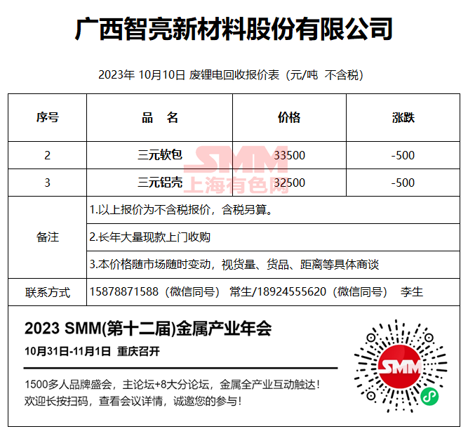 10月10日广西智亮 废锂电回收报价