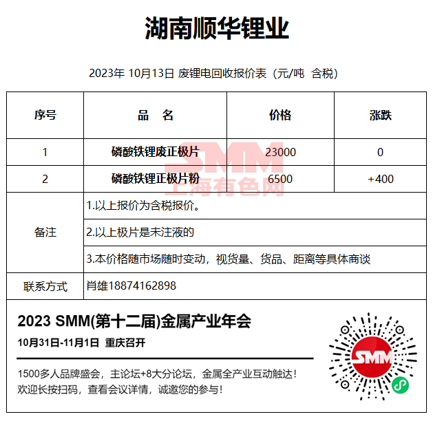 10月13日湖南顺华 废锂电回收报价