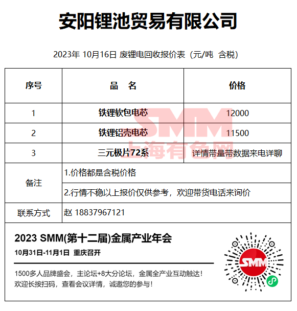 10月16日安阳锂池 废锂电回收报价