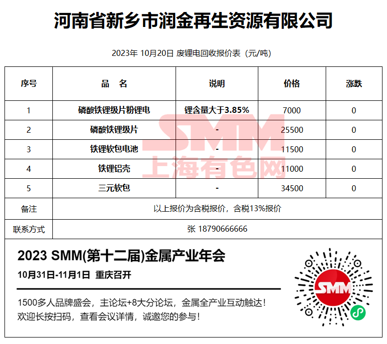 今日河南润金,废锂电回收报价已更新,有货的朋友欢迎联系我们!