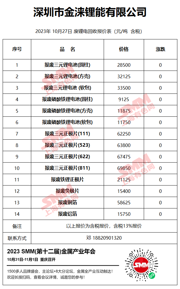 今日深圳金涞,废锂电回收报价已更新,有货的朋友欢迎联系我们!