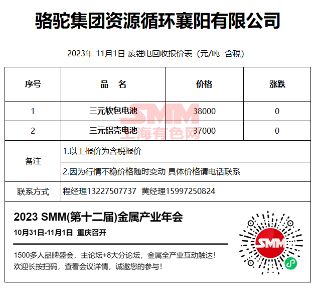 今日骆驼集团,废锂电回收报价已更新,有货的朋友欢迎联系我们!