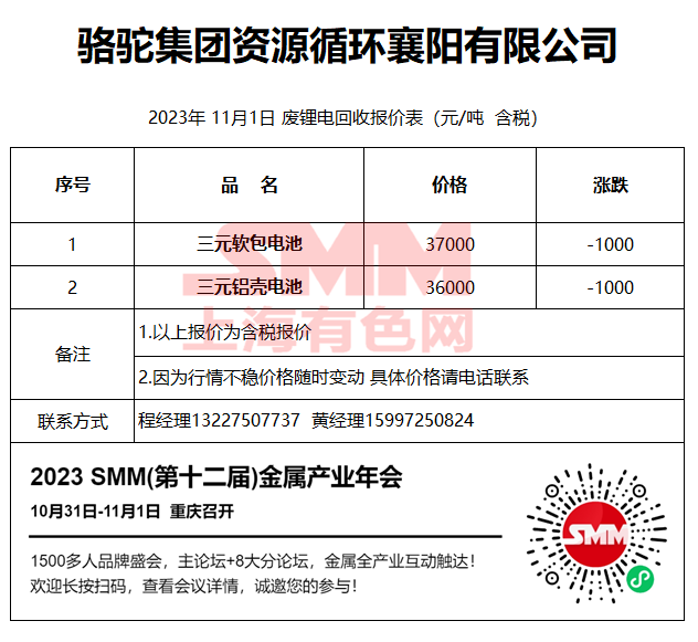 今日骆驼集团,废锂电回收报价已更新,有货的朋友欢迎联系我们!