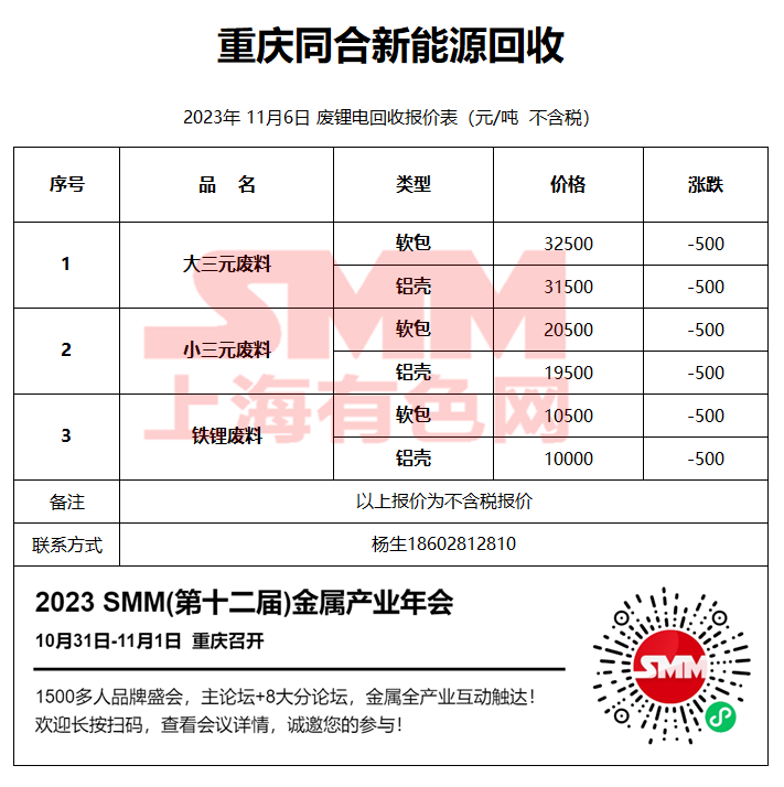 来源:SMM发布时间:2023-11-06 10:30:00