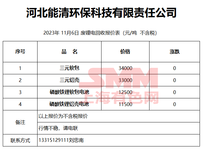 11月6日河北能清 废锂电回收报价