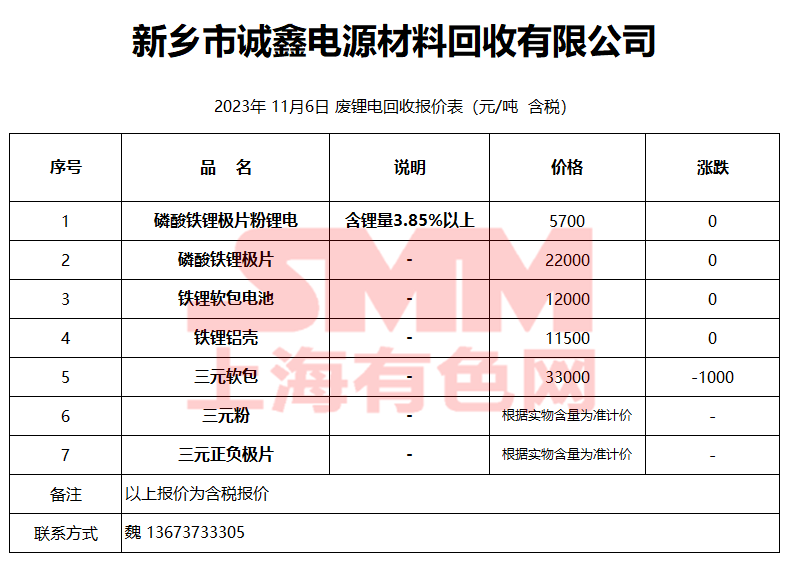 今日新乡诚鑫,废锂电回收报价已更新,有货的朋友欢迎联系我们!