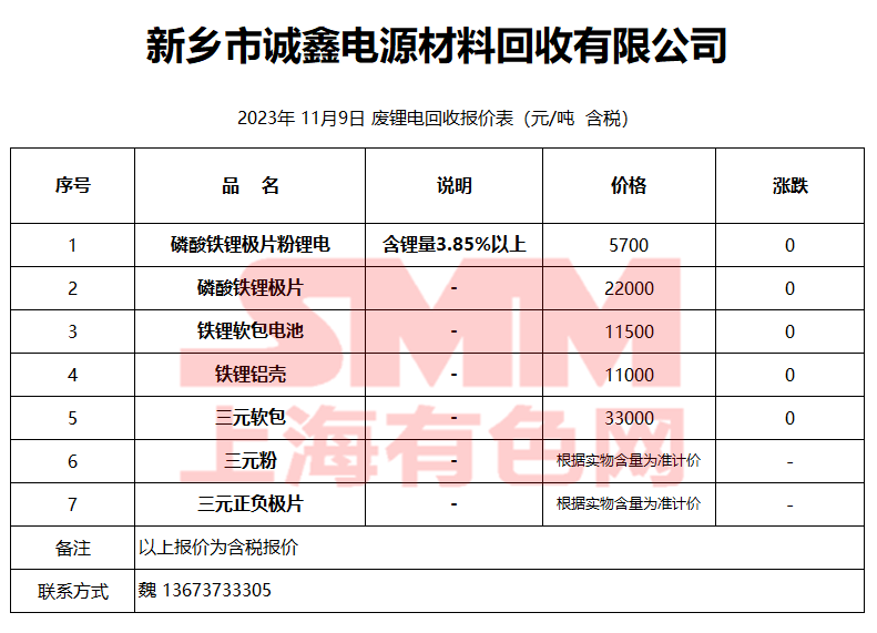 今日新乡诚鑫,废锂电回收报价已更新,有货的朋友欢迎联系我们!