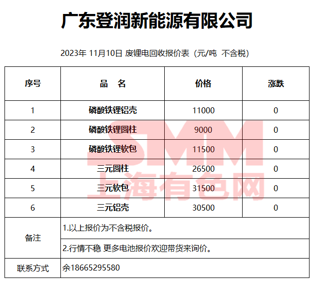 11月10日广东登润 废锂电回收报价