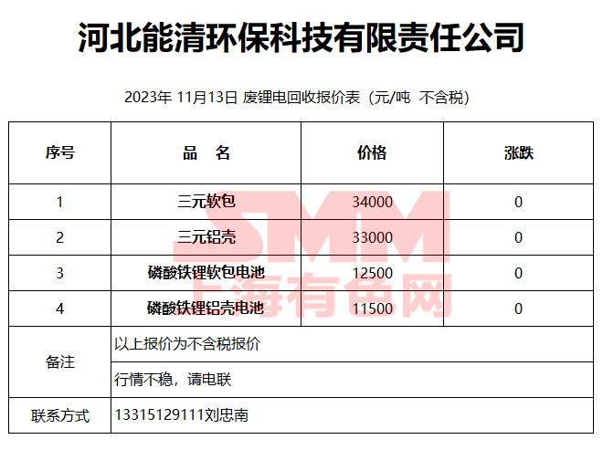 11月13日河北能清 废锂电回收报价