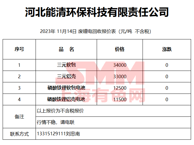 今日河北能清,废锂电回收报价已更新,有货的朋友欢迎联系我们!