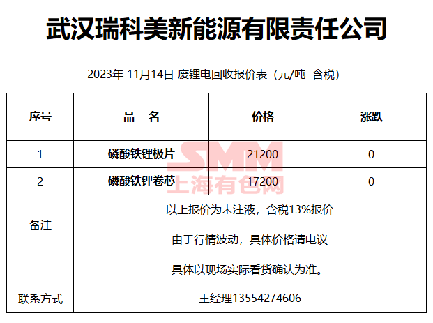 11月14日武汉瑞科美 废锂电回收报价
