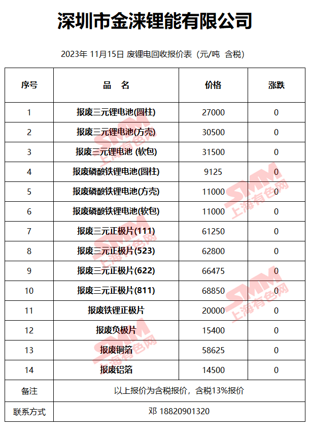 今日深圳金涞,废锂电回收报价已更新,有货的朋友欢迎联系我们!