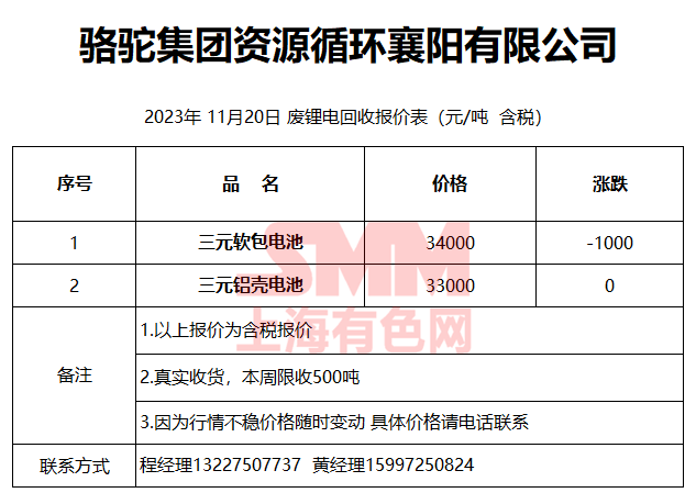 今日骆驼集团,废锂电回收报价已更新,有货的朋友欢迎联系我们!
