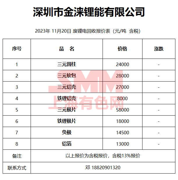 11月20日深圳金涞 废锂电回收报价