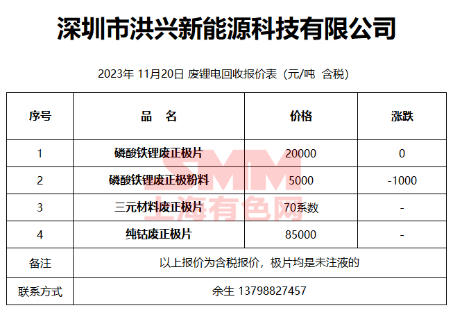 11月20日深圳洪兴 废锂电回收报价
