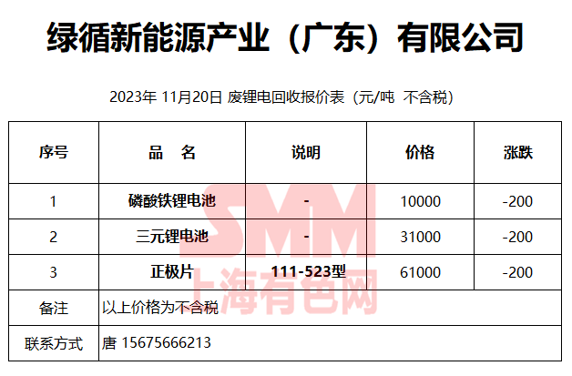 11月20日绿循新能源 废锂电回收报价