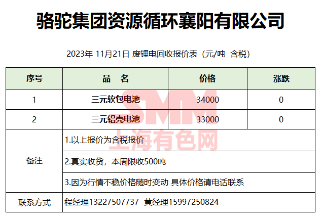 今日骆驼集团,废锂电回收报价已更新,有货的朋友欢迎联系我们!