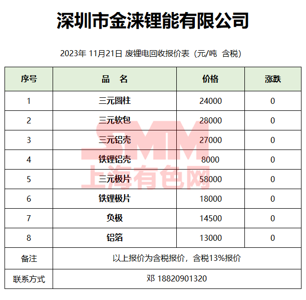 今日深圳金涞,废锂电回收报价已更新,有货的朋友欢迎联系我们!