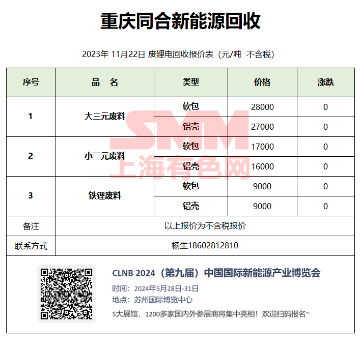 今日重庆同合,废锂电回收报价已更新,有货的朋友欢迎联系我们!