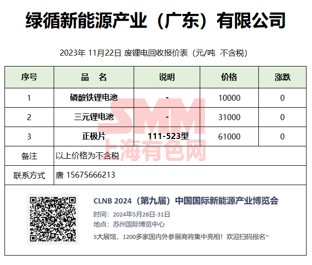 11月22日绿循新能源 废锂电回收报价