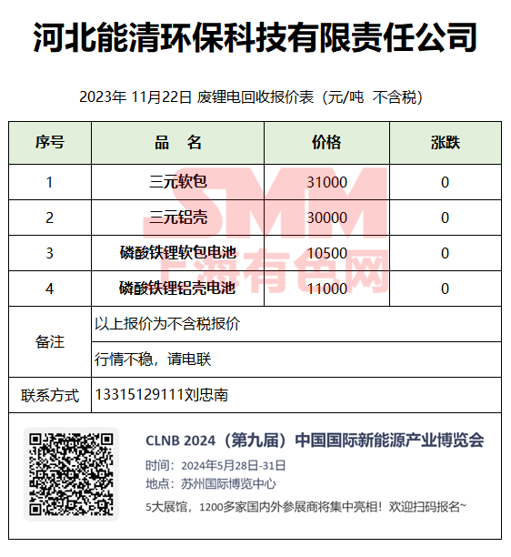 今日河北能清,废锂电回收报价已更新,有货的朋友欢迎联系我们!