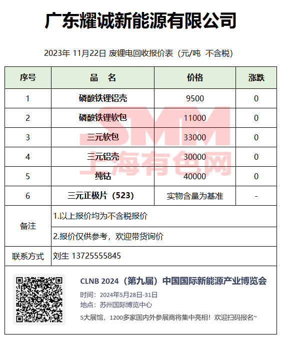 今日广东耀诚,废锂电回收报价已更新,有货的朋友欢迎联系我们!