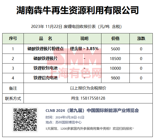 11月22日湖南犇牛 废锂电回收报价