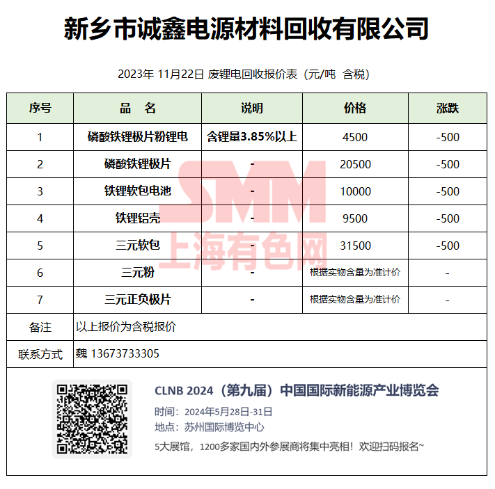 今日新乡诚鑫,废锂电回收报价已更新,有货的朋友欢迎联系我们!