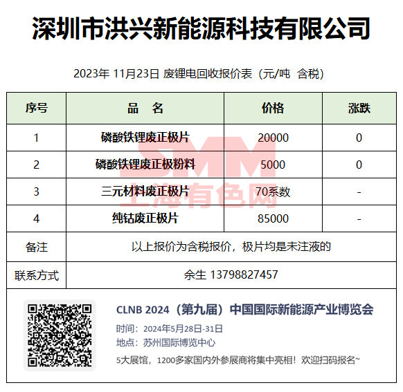 11月23日深圳洪兴 废锂电回收报价