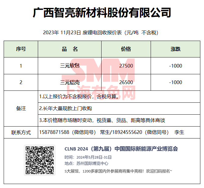 今日广西智亮,废锂电回收报价已更新,有货的朋友欢迎联系我们!