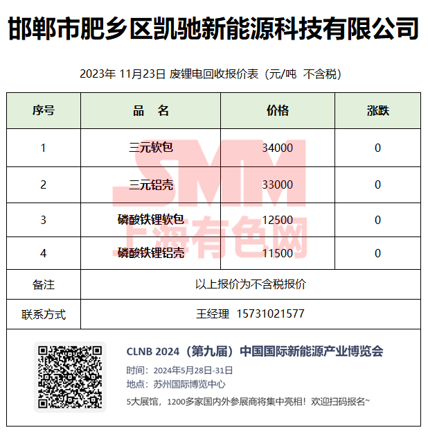 11月23日邯郸凯驰 废锂电回收报价