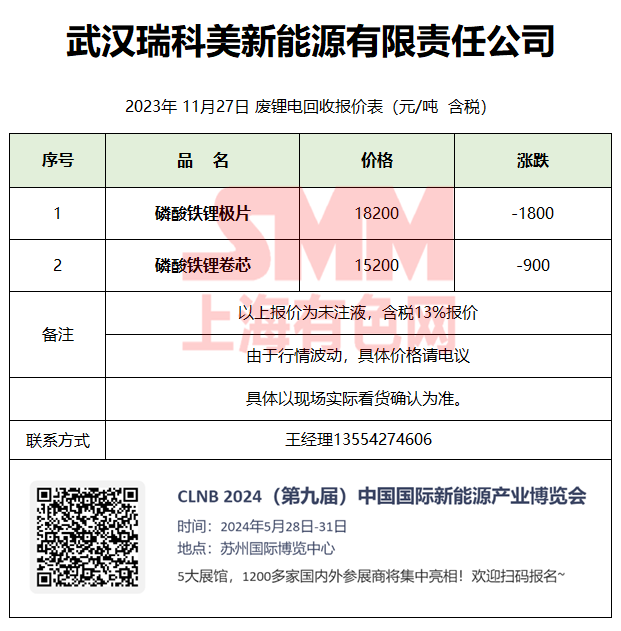 今日武汉瑞科美,废锂电回收报价已更新,有货的朋友欢迎联系我们!