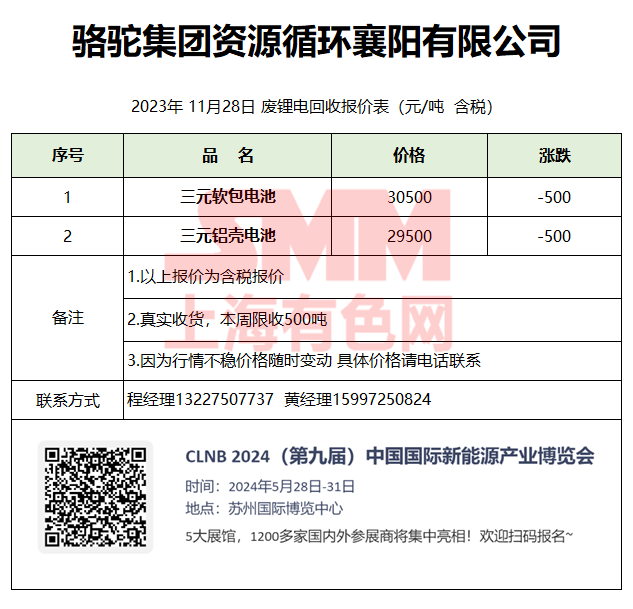 今日骆驼集团,废锂电回收报价已更新,有货的朋友欢迎联系我们!