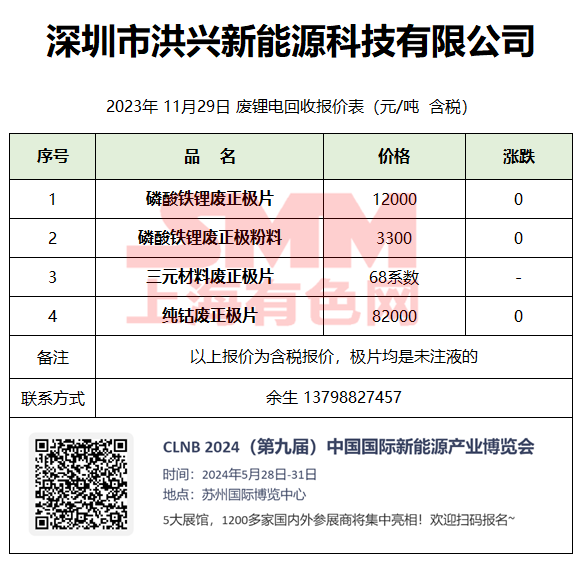 11月29日深圳洪兴 废锂电回收报价