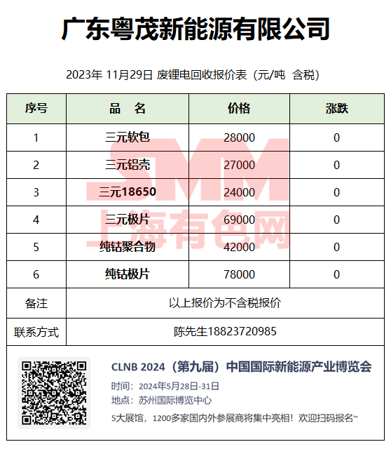 今日广东粤茂 ,废锂电回收报价已更新,有货的朋友欢迎联系我们!