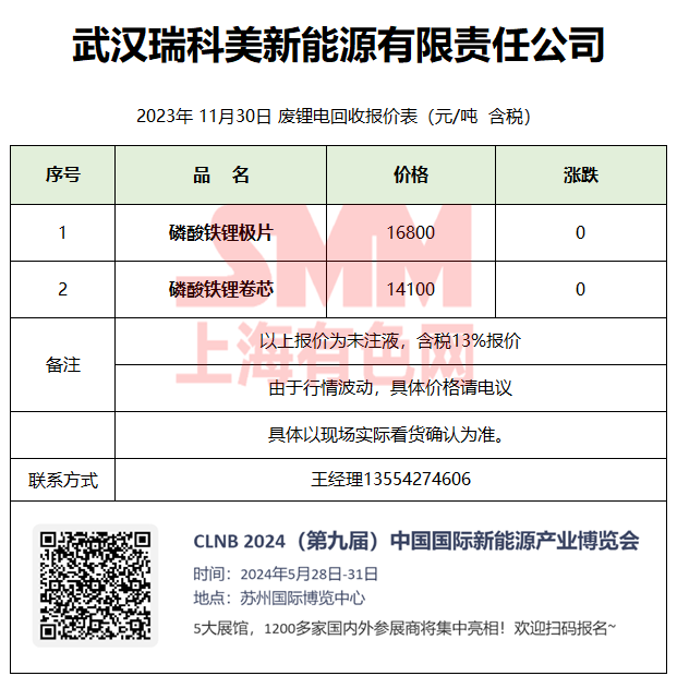 今日武汉瑞科美,废锂电回收报价已更新,有货的朋友欢迎联系我们!